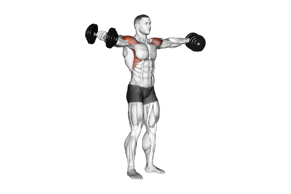 Keep a slight bend in your elbows and raise your arms to shoulder height, focusing on using your shoulder muscles to lift the weights.